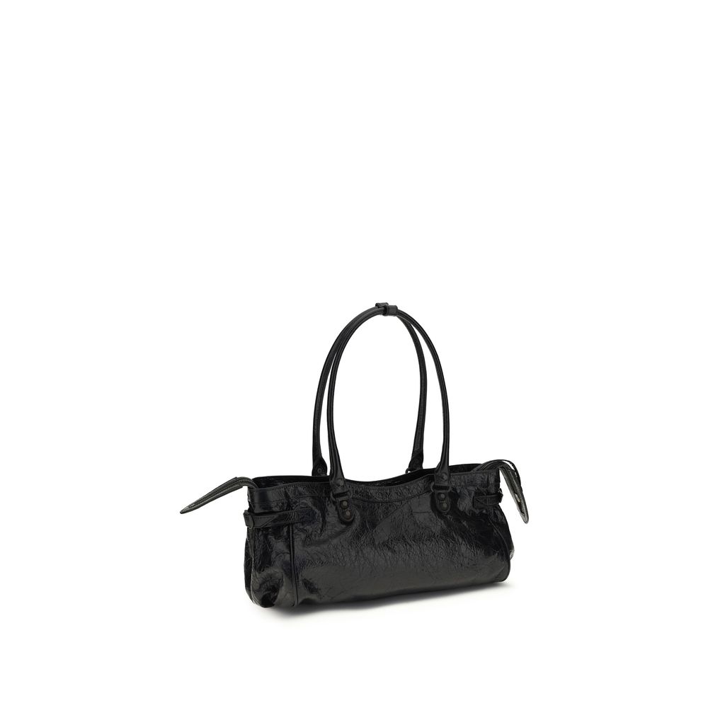 The Le City East-West Shoulder Bag by Balenciaga combines urban style with functionality. Featuring two clip-on straps, it can be comfortably carried over the shoulder, while the brass hardware enhances its elegance. The zip closure with a knotted leather pull tab ensures security, complemented by a front zip pocket. Inside, a main compartment and a flat pocket offer practicality and organization, making the bag versatile and suitable for any occasion.