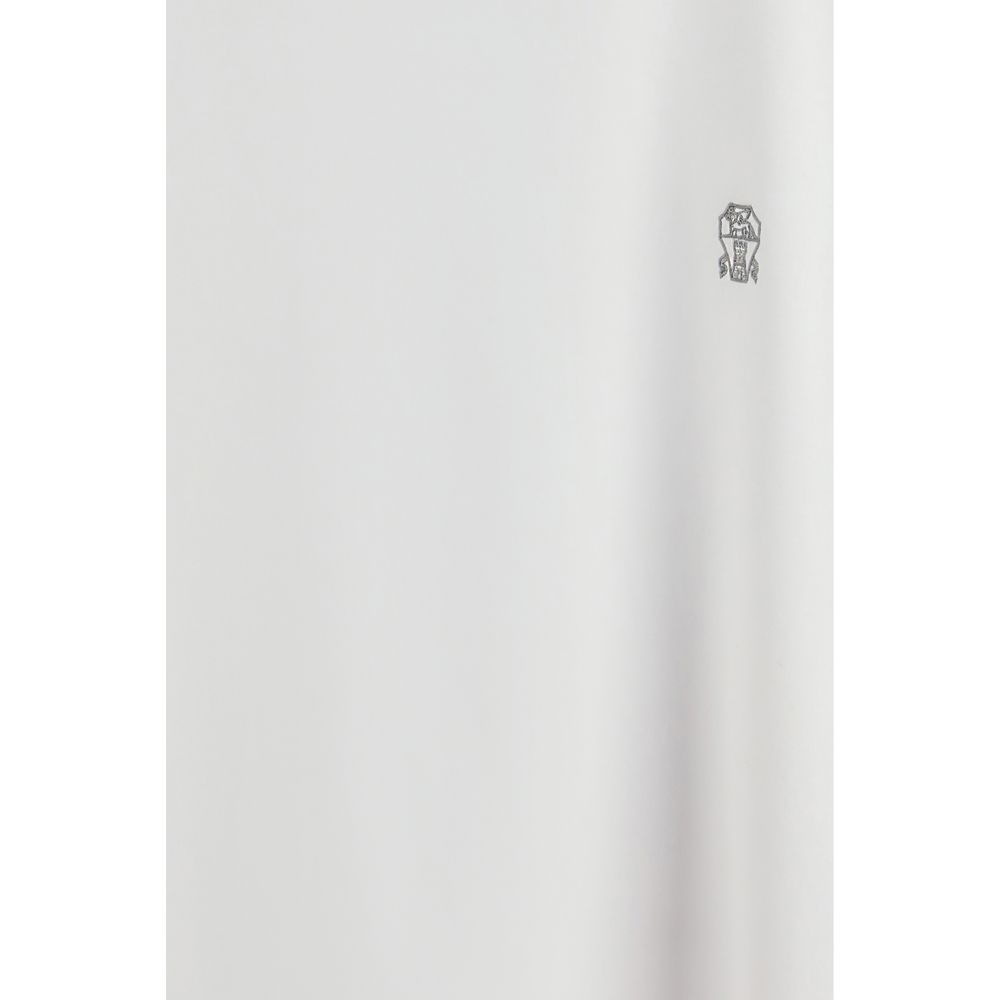 The T-shirt in cotton with a logo by Brunello Cucinelli embraces refined simplicity through a clean and carefully crafted construction, highlighted by a ribbed round neck that adds balance to the silhouette. The iconic embroidered logo on the front offers a distinctive detail that enriches the monochrome surface with subtle sophistication. The regular fit shapes a natural and harmonious outline, reflecting the understated and curated style typical of Brunello Cucinelli. The T-shirt becomes an everyday piece of elegant simplicity, combining comfort, quality and identity.