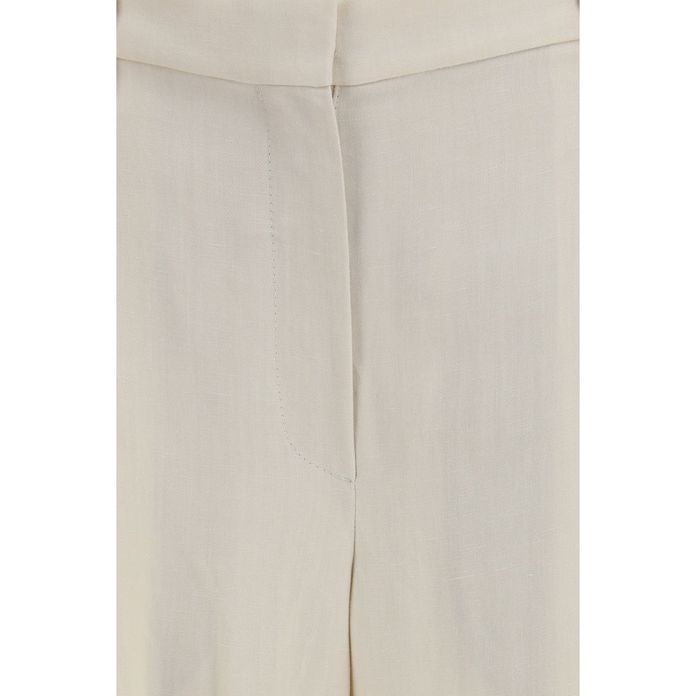 The wide Pants in fluid twill by Brunello Cucinelli are characterized by wide volumes and a straight leg, with double front pleats that define the tailored line the entire leg. The fine fluid twill is a fabric that is fluid yet structured, ensuring comfort and a regular fit. They feature a zip closure with metal hooks and a counter button, front American pockets, rear patch pockets, and a plain hem. The iconic nickel-free monili decoration by Brunello Cucinelli adds a distinctive detail. These trousers are elegant and suitable for business, formal, and smart casual outfits.