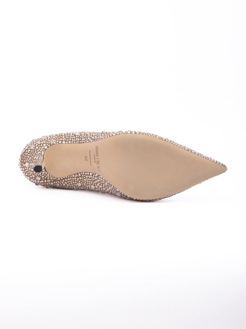 100% Authentic Jimmy Choo Light Bronze Crystal Love 85 Pumps.