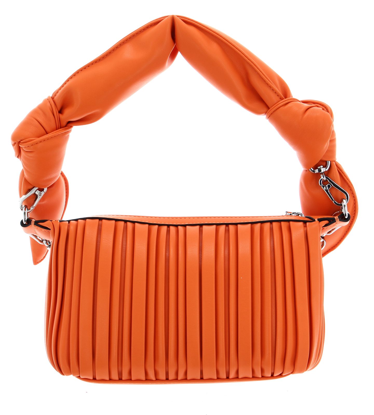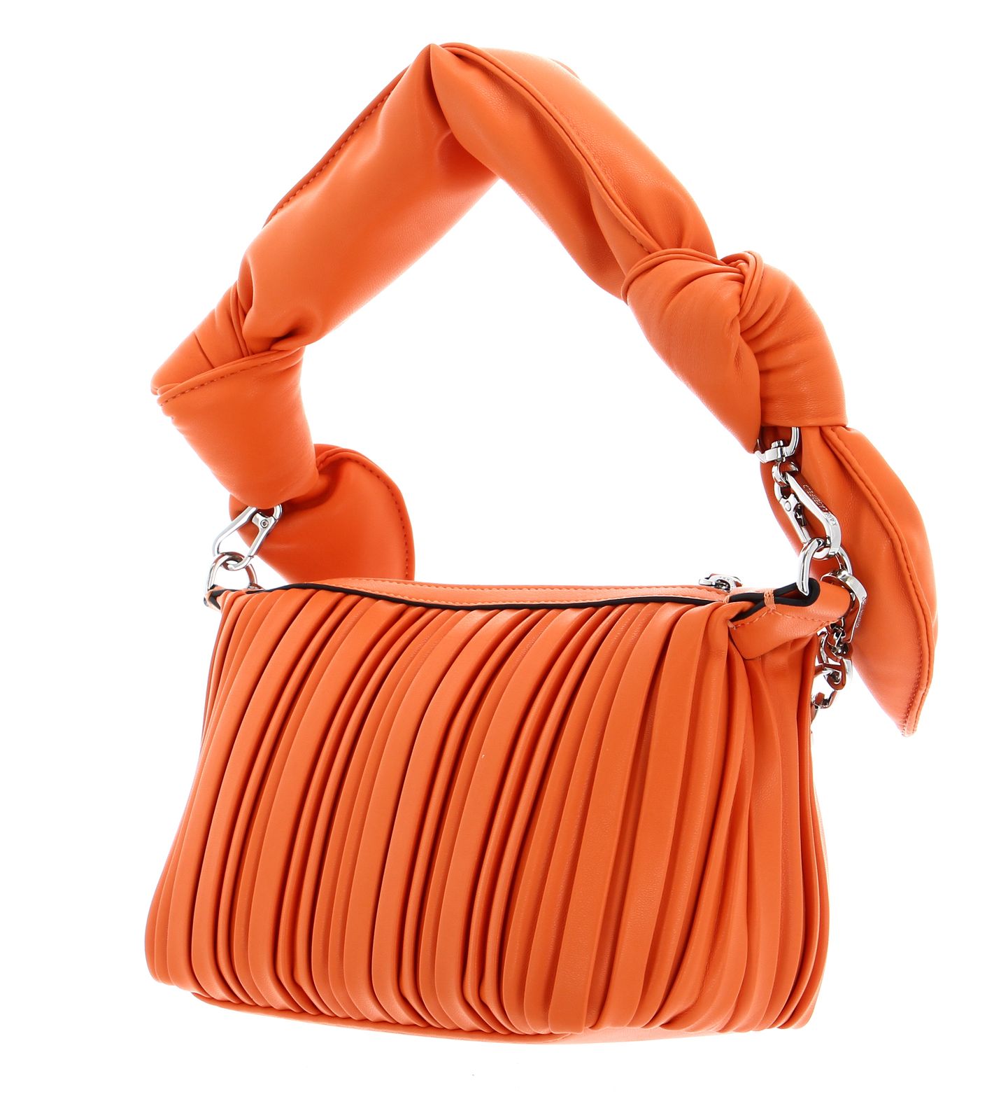 Elegantiška Karl Lagerfeld K/Kushion rankinė per petį oranžinės spalvos. Pagaminta iš 100% poliuretano. Matmenys: plotis ~24 cm, aukštis ~16 cm, gylis ~8 cm, svoris ~440 g. Užsegama užtrauktuku. Pagrindiniame skyriuje yra 1 įkišamas skyrius. Komplekte: 1 rankena (~50 cm) ir 1 virvutė (~35 cm), abi nuimamos. Sustiprintas dugnas. Aiškiai matomas Karl Lagerfeld logotipas.