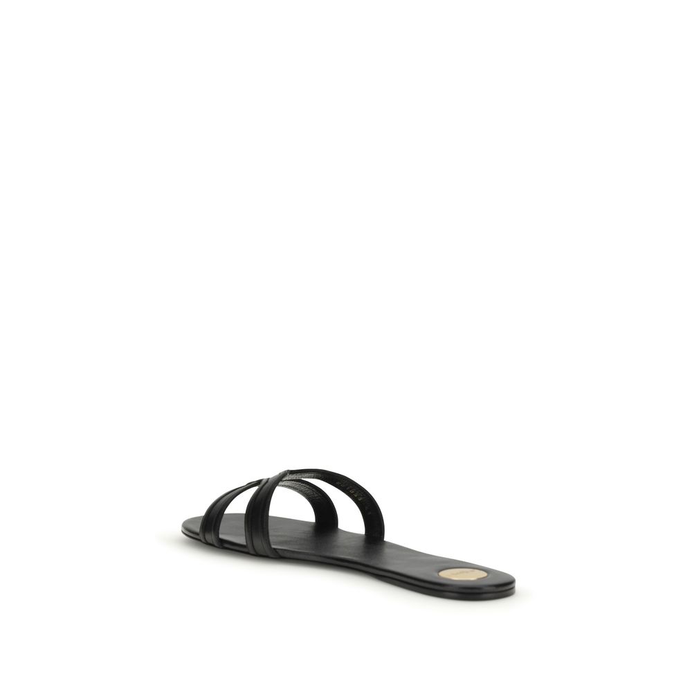 The smooth leather Mabrouka Sandals by Saint Laurent feature a rounded toe and a thick double strap that lends structure and style. Crafted from metal-free tanned leather with a leather sole, these sandals combine elegance and comfort, while the round metal Saint Laurent-engraved tag on the insole adds a distinctive and refined detail.