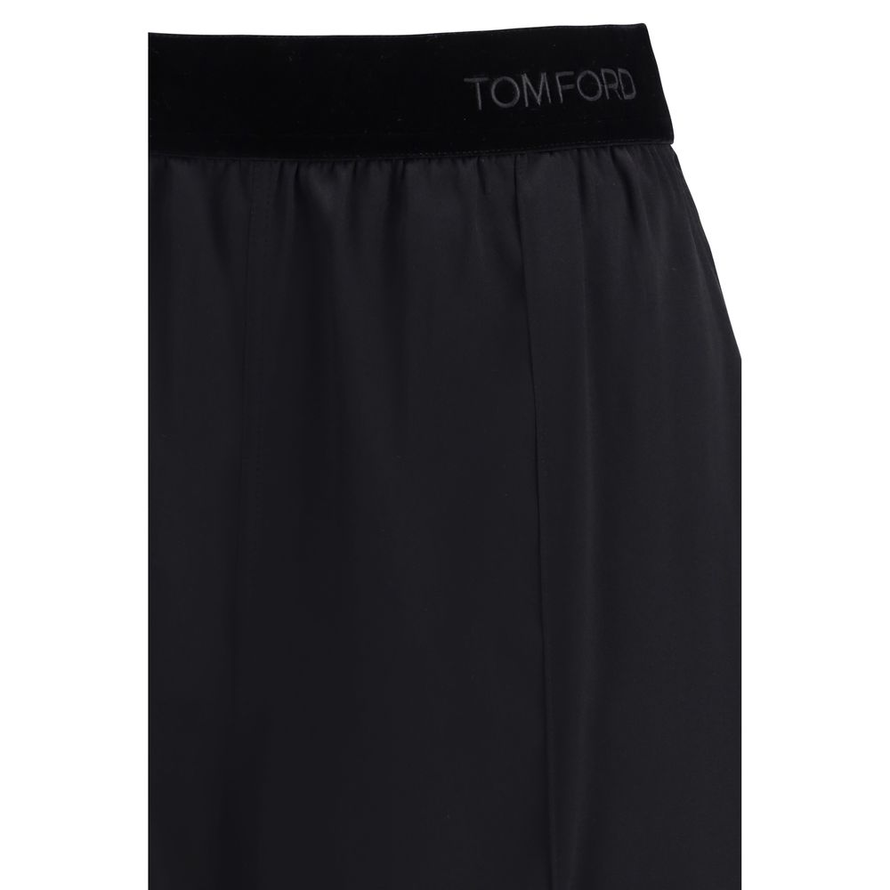 The stretch silk satin Trousers by Tom Ford feature a relaxed fit and are defined by the new doubled silk satin waistband. The tonal embroidered TF logo, repositioned to the side, adds an iconic yet subtle detail. The stretch silk satin fabrication ensures comfort, fluidity, and a refined appearance.