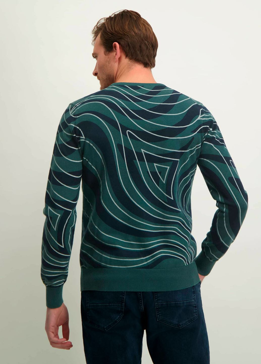Šis modelis sukurtas tiems, kurie vertina patogumą, kokybę ir išskirtinį dizainą. Sodri žalia spalva ir abstraktus geometrinis raštas iš karto patraukia dėmesį. Švelnus trikotažas maloniai priglunda prie kūno ir nevaržo judesių, o apvali iškirptė suteikia klasikinių akcentų. Tai drabužis, kuris lengvai sukuria stilingą įvaizdį be papildomų pastangų.Megztinis pagamintas iš 100% organinės medvilnės – hipoalerginė, kvėpuojanti ir itin maloni odai medžiaga, tinkama net jautriai odai. Rankogaliai, apačia ir apykaklė yra tankesnio mezgimo, todėl gerai išlaiko formą net po daugelio skalbimų. Universalus kirpimas ir išraiškingas raštas leidžia lengvai priderinti šį modelį prie šiuolaikinio vyro garderobo.
