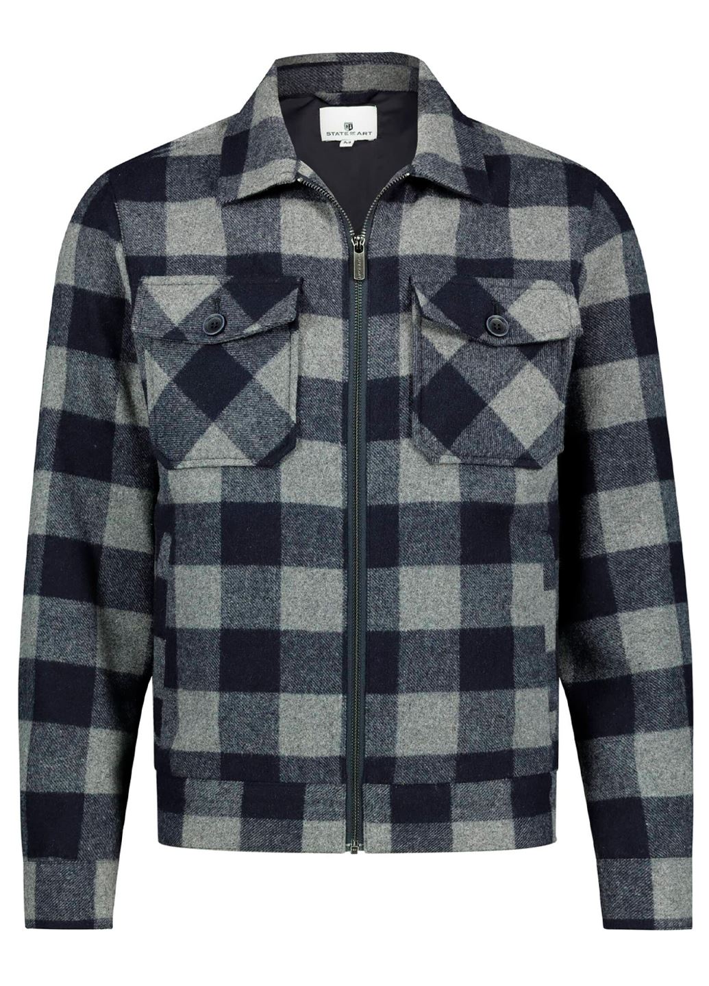 Vyriški marškiniai-švarkas „State of Art“ – stilingas miesto pasirinkimas su langelių raštu, puikiai tinkantis pavasario ir rudens pasivaikščiojimams.